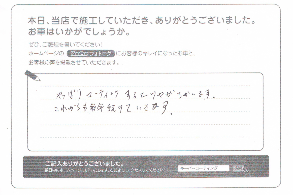 ボディーの手触りもサラサラになってビックリです。」とオーナー様に大変喜んで頂きました。