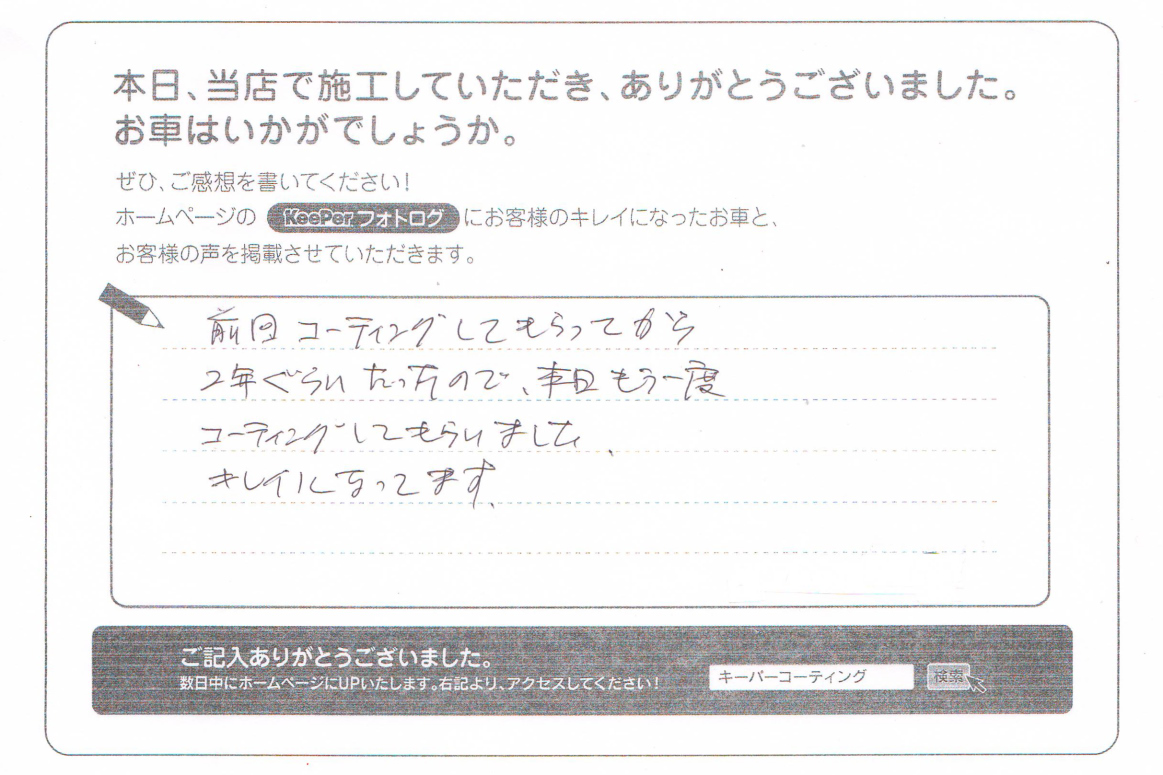 クリスタルキーパー施工で、今回もバッチリピカピカに仕上がりました。