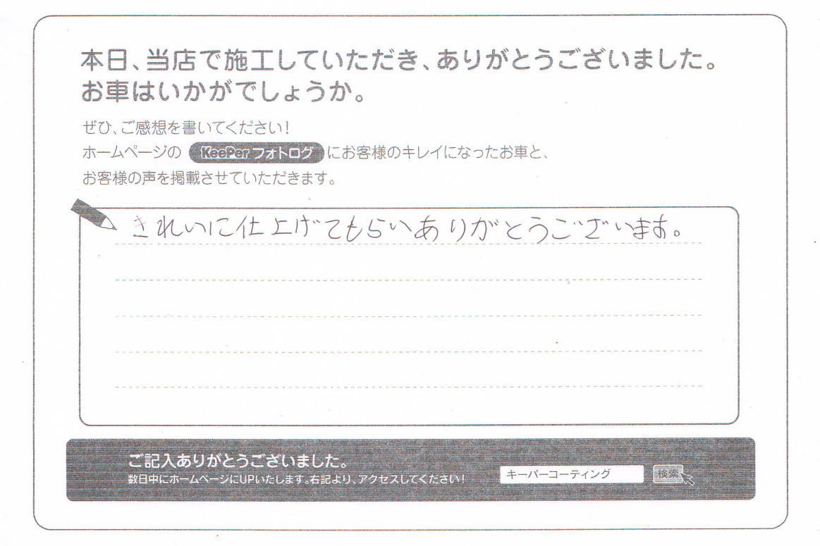 メンテナンスと部分施工は、前の車をコーティングしてもらっていたこちらでお願いしたいです。」