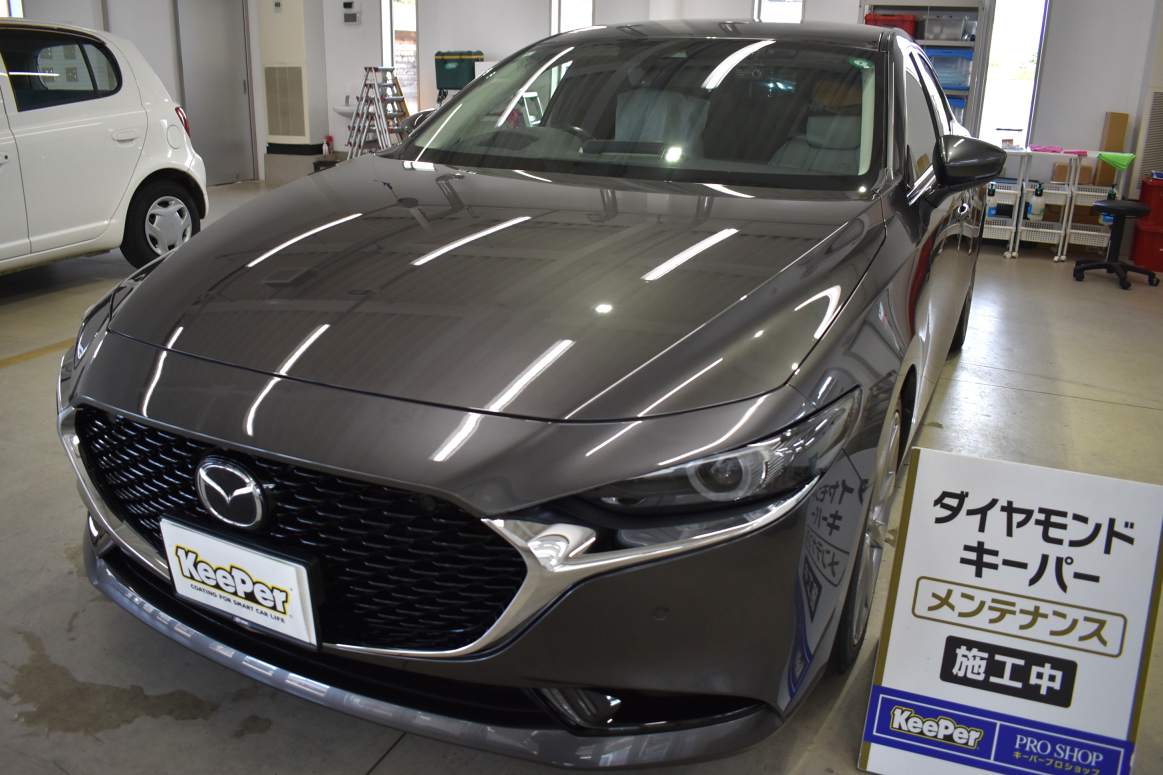 マツダ3に、2回目のダイヤモンドキーパーAメンテナンスと超撥水ガラスコーティング(フロント)