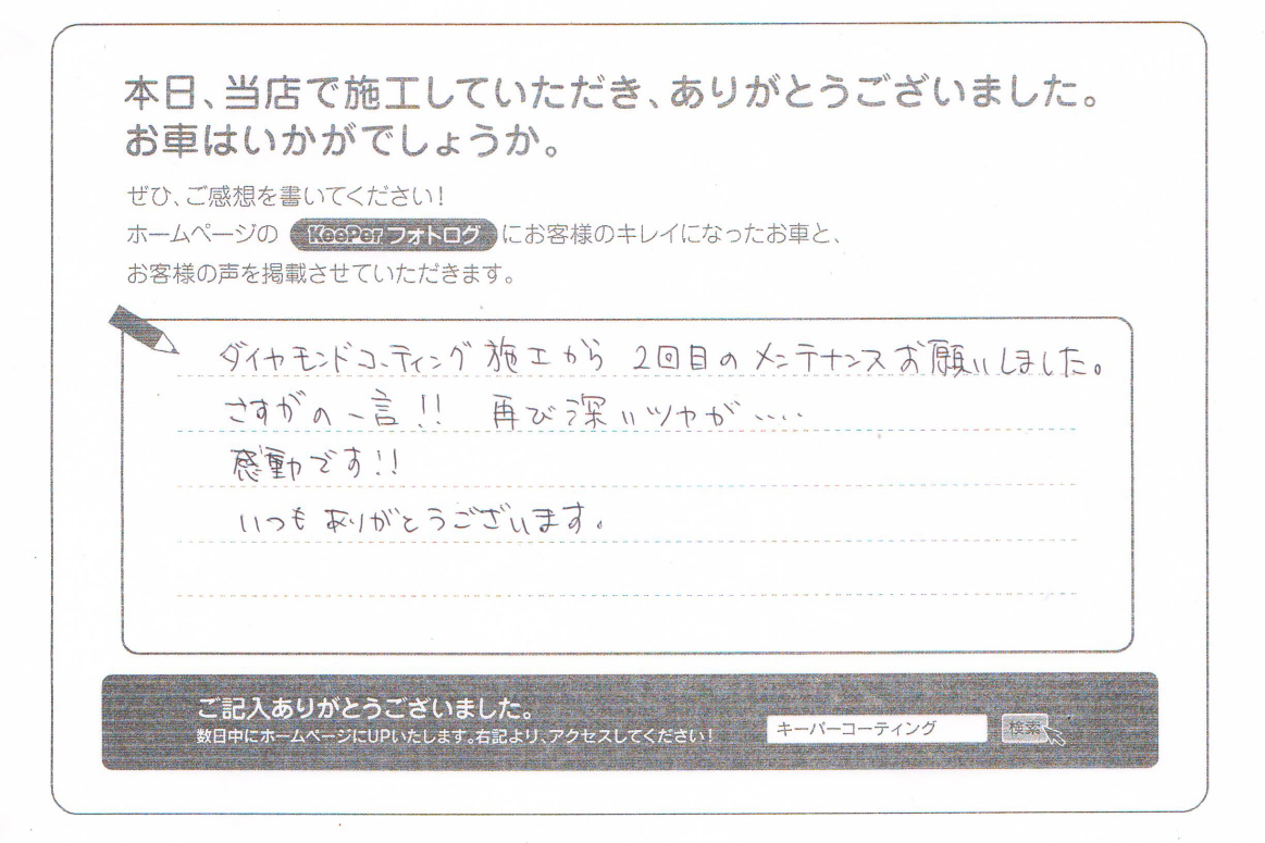 メンテナンスで艶と水弾きが戻り大満足です。」