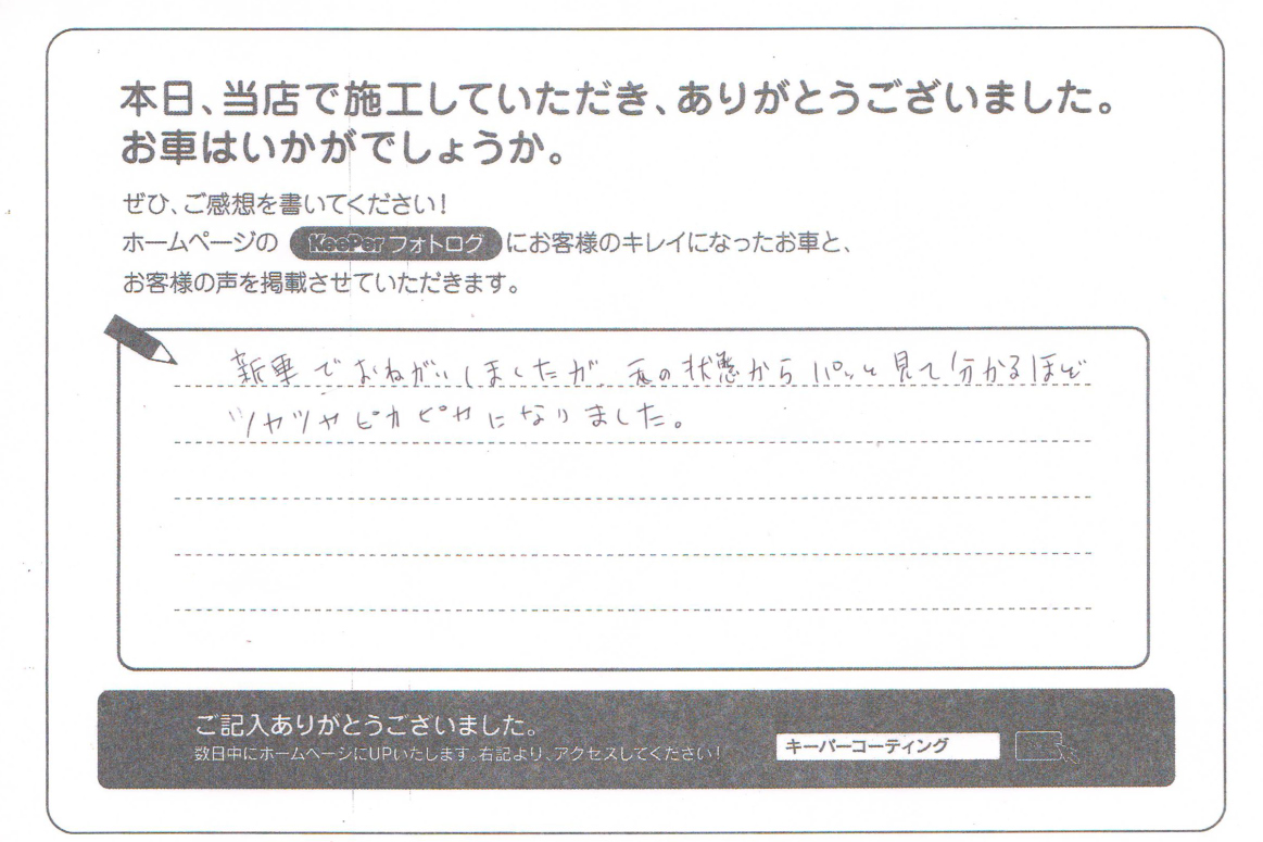 「前にディーラーでコーティングしたのですが、いまいちだったのでキーパーさんのブログを見て、