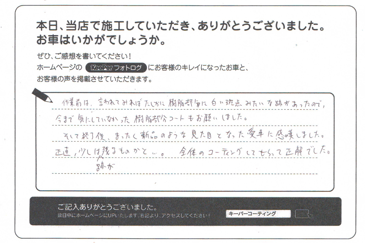 タフトに、3回目のクリスタルキーパーと無塗装樹脂パーツキーパーの施工をお任せ下さいました。