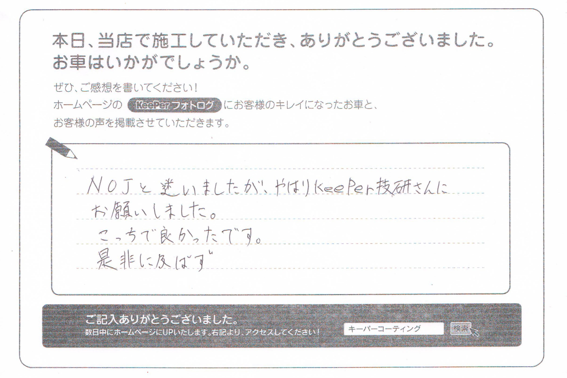 「前の車もこちらでコーティングをして、とてもキレイに乗ることができました。