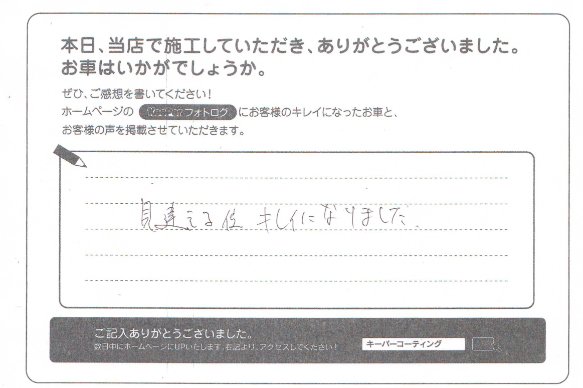 2回目のクリスタルキーパー施工で前回よりもツヤ感が増し、とてもキレイに仕上がりました。
