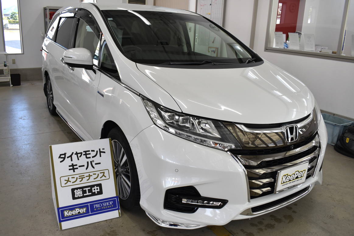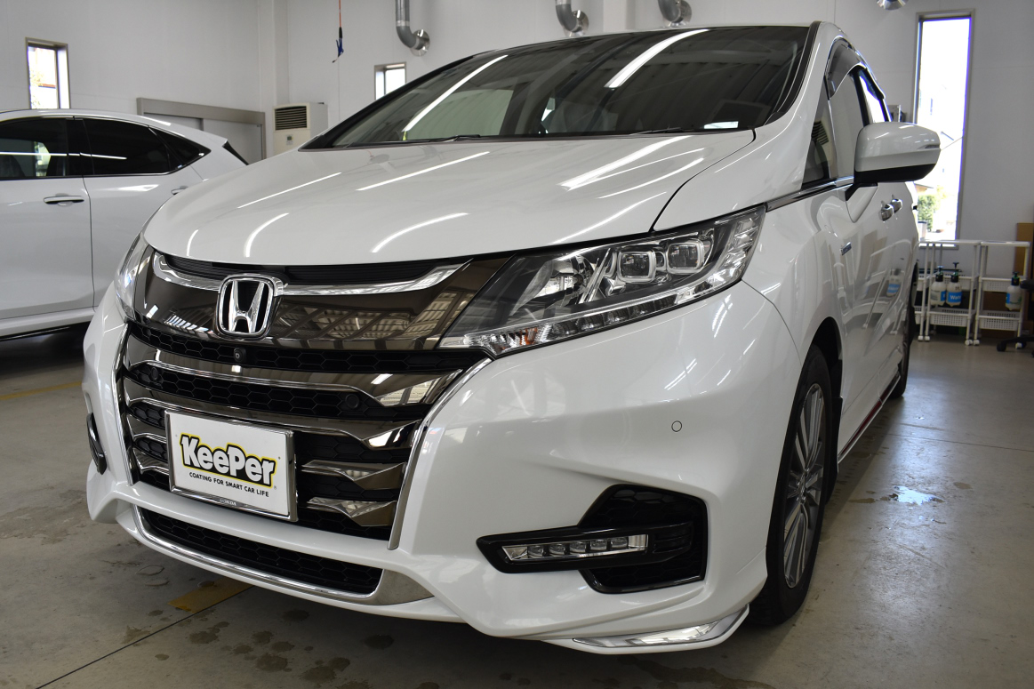 オデッセイに、ダイヤモンドキーパーAメンテナンスと超撥水ガラスコーティング(フロント)