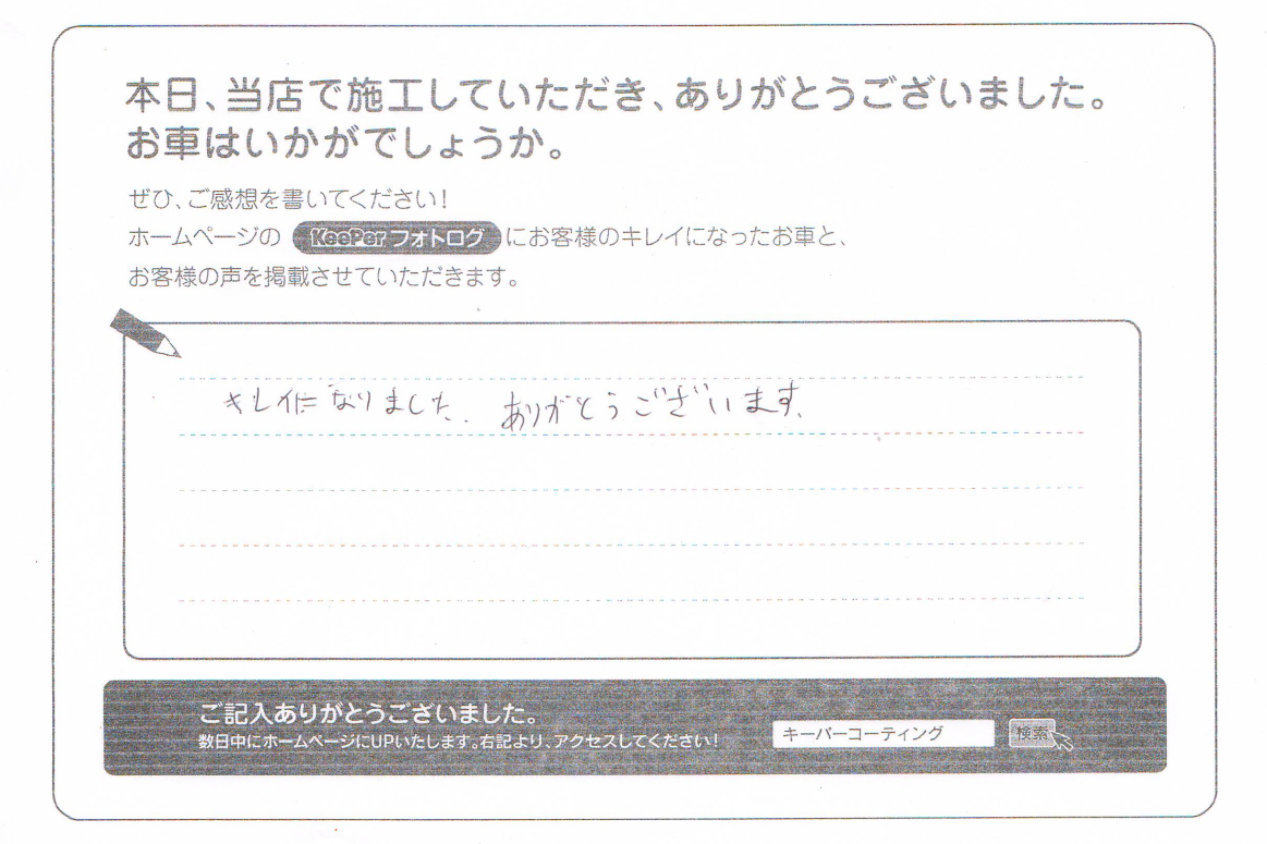 「施工前と全然違う。ツヤがすごいキレイでボディーに映り込みもはっきり出るくらい美しいです。